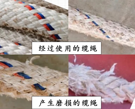 任何已經(jīng)使用了一段時(shí)間的纜繩都會(huì)出現(xiàn)正常的磨損。在使用過的纜繩中,部分纜繩因其本身的產(chǎn)品特性就是強(qiáng)度高、耐磨性好,會(huì)比其他類型的纜繩磨損度輕。