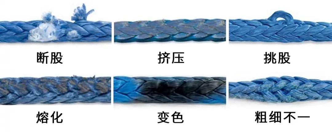 處理:可去掉受損部分,重新打扣或更換纜繩。