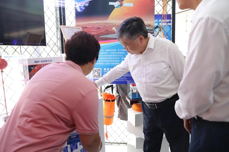 國家工信部科技司一級巡視員畢開春、山東省工信廳一級巡視員羅新軍、青島市副市長耿濤等領(lǐng)導(dǎo)蒞臨海麗雅展位,對集團(tuán)“海麗安心”安全應(yīng)急產(chǎn)品、“蛟龍”高端特種繩纜裝備給予肯定。