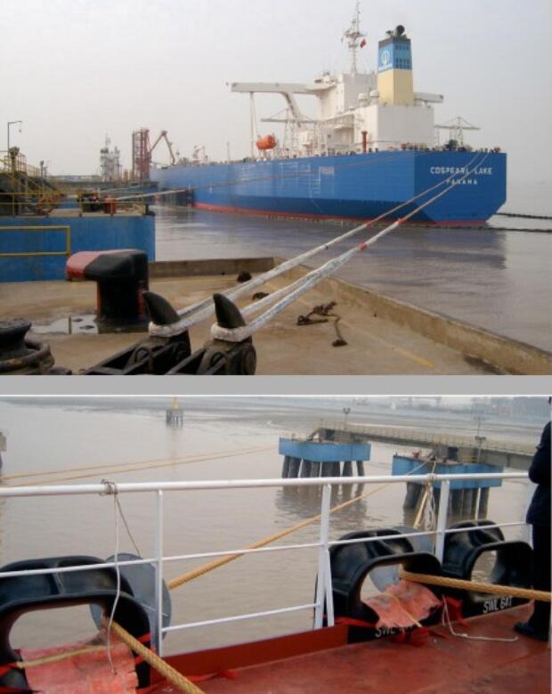 2008年1月,大連遠洋運輸公司所屬的遠珍湖”號成為世界上第一艘裝備全套超高分子量聚乙烯纖維系泊繩的VLCC,該船上總計裝備了22根系泊纜繩,其中20根裝于纜機上用于系泊操作,其余2根用于備用。單根纜繩最小破斷力為1300KN。帶著這些纜繩,“ 遠珍湖”正往返于遍布世界各地的港口碼頭。