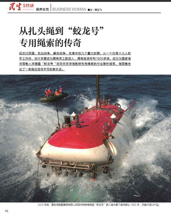 青島海麗雅集團94年專注一根繩子,在傳統(tǒng)與創(chuàng)新之間尋求突破,不斷為繩纜注入科技力量。公司完成了從純手工生產(chǎn)扎頭繩到為國家海洋科考船“大洋一號”、載人潛水器“蛟龍?zhí)枴钡燃舛祟I(lǐng)域研發(fā)、配備高科技特種繩纜,再到應(yīng)急自救產(chǎn)業(yè)的進化,實現(xiàn)了從“中國制造”到“中國質(zhì)造”。