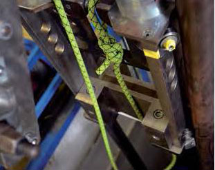 墜落試驗是繩子非常重要的試驗之。在我們的升降塔測試設備可以確定一根繩子能承受多少標準的下落。單繩和半繩單獨測試,而雙繩和至少五個標準墜落;雙繩必須在至少12個標準墜落。