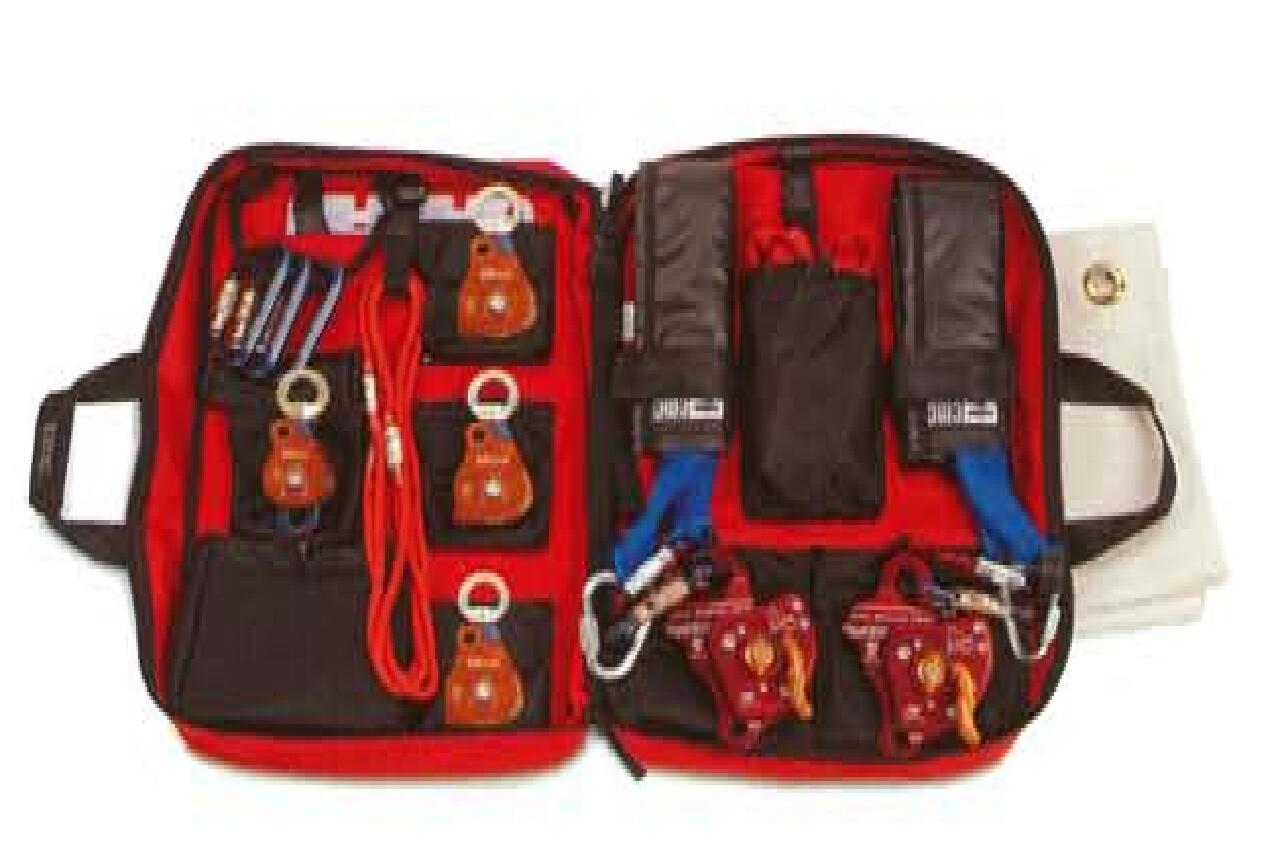 器材包不僅僅用于儲存器材,方便攜帶,更重要的是用于器材的組裝,保證器材時(shí)刻處于可裝配的待命狀態(tài)。舉個(gè)例子,錨裝備可以放一個(gè)包里,主繩和附屬硬件放一個(gè)包里,保護(hù)系統(tǒng)的繩索和器材放第三個(gè)包里。換句話說組裝一個(gè)包內(nèi)的裝備,就可以組裝成主繩或保護(hù)繩系統(tǒng)。其目的就是救援所需的裝備都能第一時(shí)間到達(dá)現(xiàn)場,然后所有器材都能進(jìn)行快速組裝。