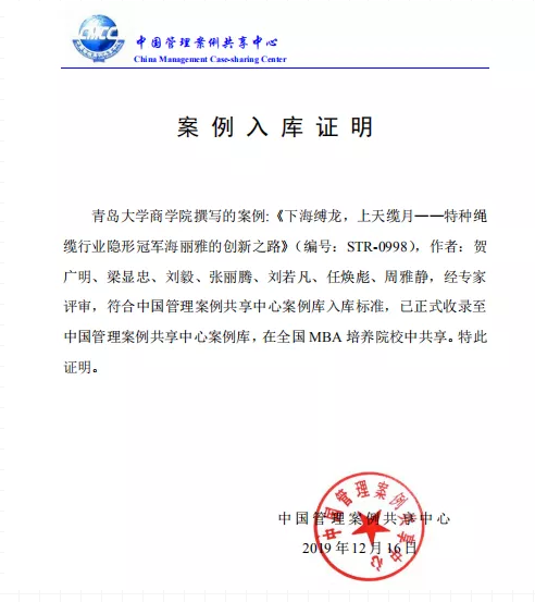 青島海麗雅集團堅持走“專、精、特、新”的發(fā)展戰(zhàn)略,通過國際領先的產(chǎn)品開發(fā)水平和技術創(chuàng)新能力,堅持產(chǎn)品品質(zhì)戰(zhàn)略,不斷提高自身核心競爭力,成為代表中國應急安全保障類產(chǎn)品走向世界的領軍企業(yè)。2018年,海麗雅作為中國百年企業(yè)創(chuàng)新發(fā)展的典型學術研究案例,入選浙江大學“隱形冠軍”國際研討會。2019年,該案例入選“中國管理案例共享中心案例庫”,在全國高校MBA教育課程中共享。