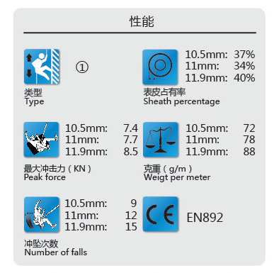 訓(xùn)練動(dòng)力繩良好的彈性為沖墜者提供更好地保護(hù),性能指標(biāo)符合歐盟標(biāo)準(zhǔn)EN 892。