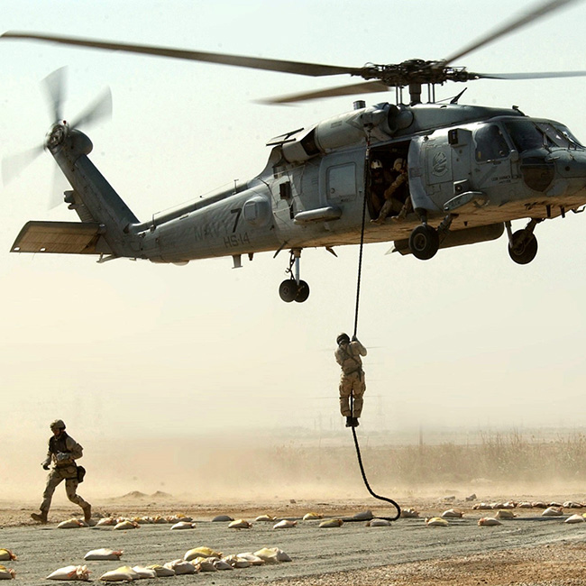 飛機(jī)繩-飛機(jī)上逃離繩是專門為從直升機(jī)上快速下降而開(kāi)發(fā)的,無(wú)需借助下降器,只需手套的摩擦。它柔軟而靈活的結(jié)構(gòu)促進(jìn)了舒適而精確的下降。