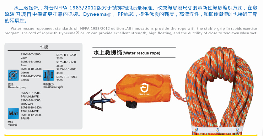 “蛟龍”水上救援繩,具備優(yōu)良的強(qiáng)度、高懸浮性、和即使潮濕也接近于0的延展性,被廣泛應(yīng)用于暴雨洪水等災(zāi)害的救援中。
