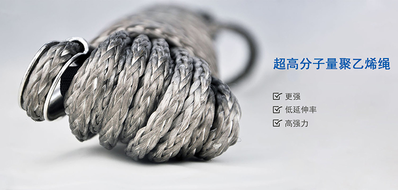 超高分子量聚乙烯繩纜具有超高強度、輕質(zhì)、低延伸率等優(yōu)點。強度與相同直徑的鋼纜基本相同,同等斷裂強力時,繩纜重量僅為鋼纜的1/8,尼龍或滌綸繩的1/4—1/5,丙綸繩的18%—20%,直徑僅為尼龍或滌綸繩的55%—60%,丙綸繩的45%。經(jīng)過特殊的后整理技術(shù),更進一步提高繩纜的耐磨性和使用壽命。