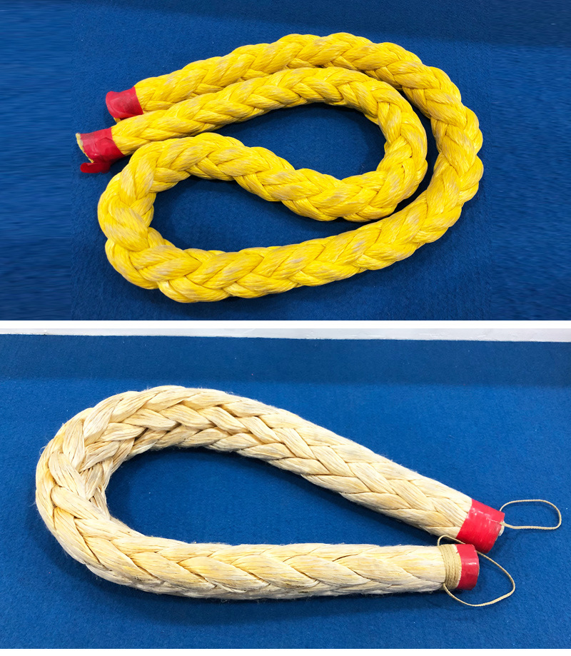 纜繩兩頭眼環(huán)都帶金屬的套環(huán),套環(huán)周圍的繩子本身需要加一層滌綸纖維編織包覆護(hù)套(護(hù)套厚度不小于6毫米),然后在繩子外層涂覆一層聚氨酯膠水,以增加纜繩的耐磨性能。纜繩在離套環(huán)25英尺處開始加裝浮管,浮管的數(shù)量必須符合規(guī)定的要求。